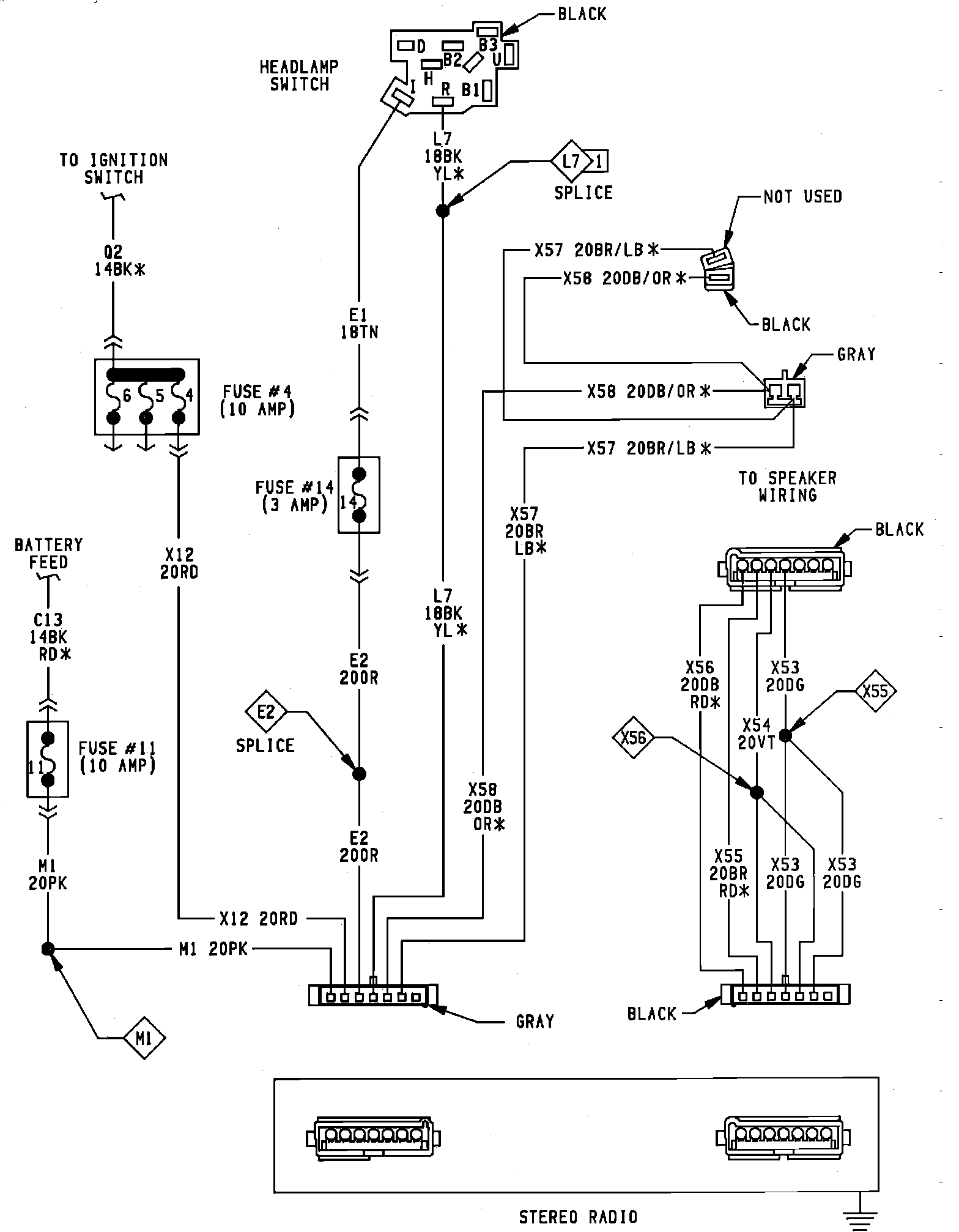 Radio Wiring Circuit. Stereo With Dual Speakers: