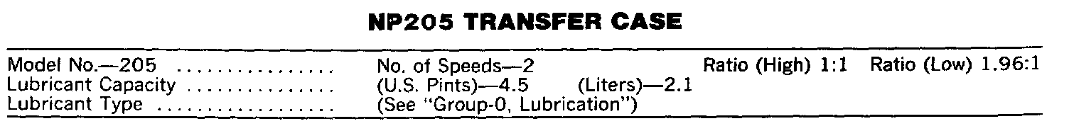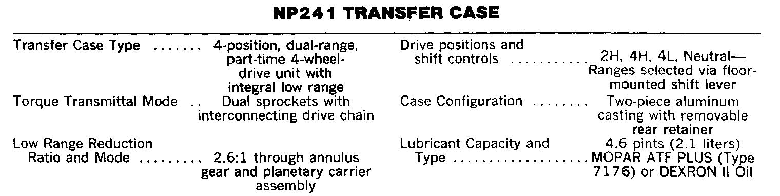 NP 241 Transfer Case Specifications: