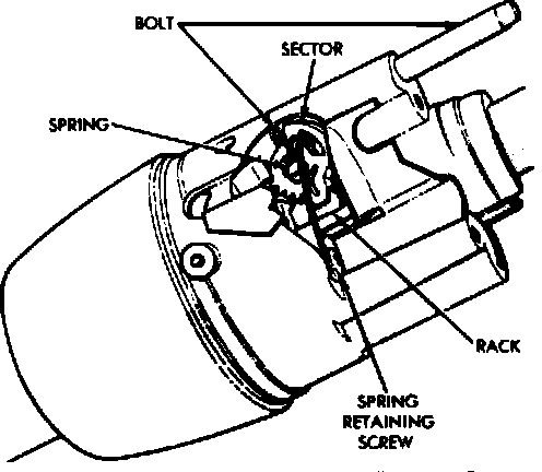 29. Remove lock bolt spring by removing spring retaining screw and moving spring clockwise to remove from bolt.