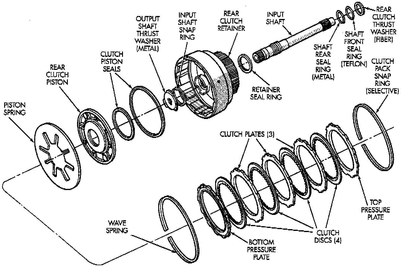 DISASSEMBLY1. Remove fiber thrust washer from forward side of clutch retainer.