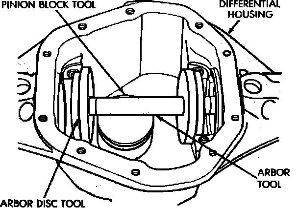a. Install arbor and disc assembly in bearing cap bores, then position height block on pinion face.