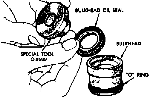 4. Coat all seals with automatic transmission fluid then, assemble new O-ring onto bulkhead followed by new oil seal using tool No. C-4669.