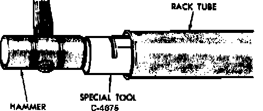 6. Using tool No. C-4675, seat bulkhead in the rack tube. Install retaining wire by rotating bulkhead assembly counterclockwise. Remove protective tool.
