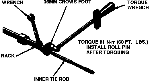 12. Install tie rod assembly on rack. While holding rack in position with a wrench torque inner tie rod pivot housing to 60 ft. lbs.. If rack is not held in position while tightening tie rod housing, damage to the pinion teeth will result.