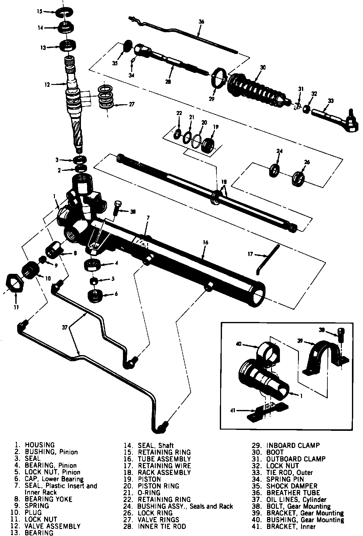 Fig. 1 Exploded view of TRW power rack & pinion steering gear:
