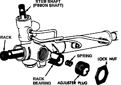 6. Loosen adjuster plug locknut then, remove adjuster plug, spring and rack bearing.