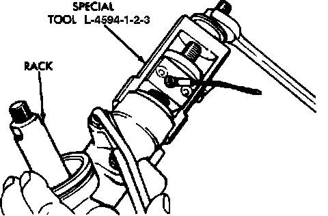 12. To remove valve and pinion assembly, rotate stub shaft until rack is centered in housing, with pinion fully engaged. Mark position of stub shaft flat on housing for reassembly. Using tool No. L-4594-1-2-3 pull valve and pinion assembly out of valve housing. If necessary, remove valve body seal rings.