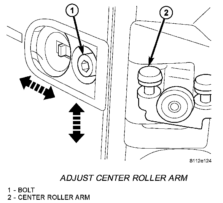 7. Loosen center roller bolt and adjust the front and rear gaps.
