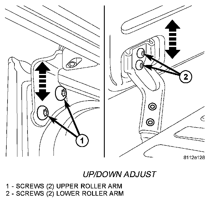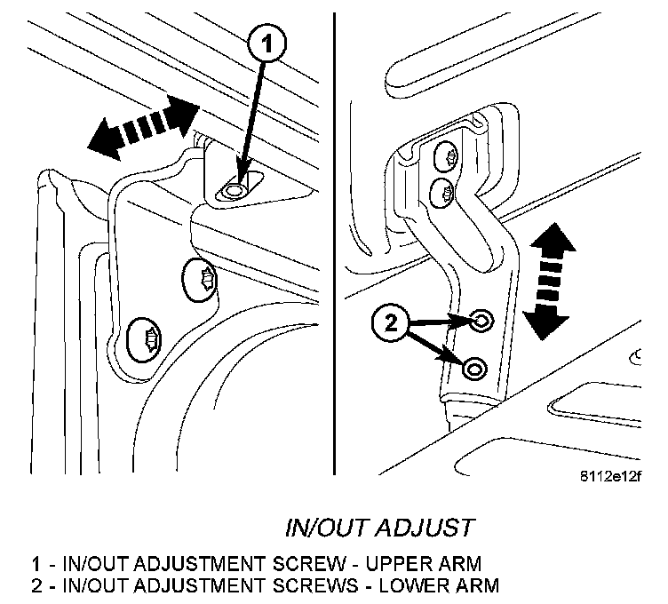 ADJUSTMENTNOTE: Door adjustment measurements should be taken from stationary or welded body panels like the roof, rocker or quarter panels. A suitable body sealant should be used when removing or moving the hinges.