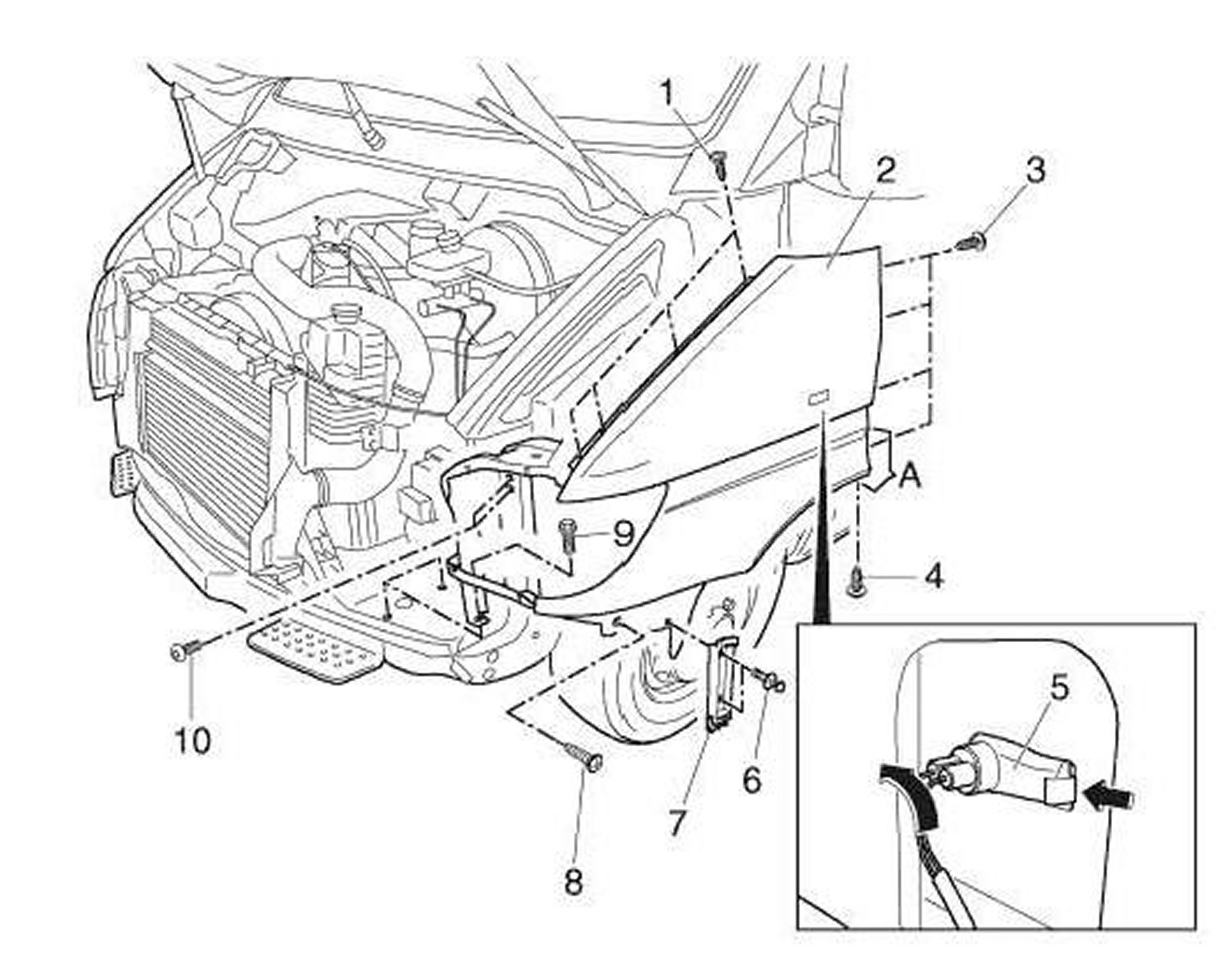 7 Remove sealant between area (A) of wheelhouse and front end paneling