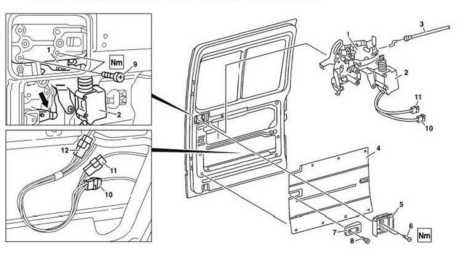 8. Detach release cable (3) from inside door lock (1). For easier installation - Unhook clip on inner door panel.