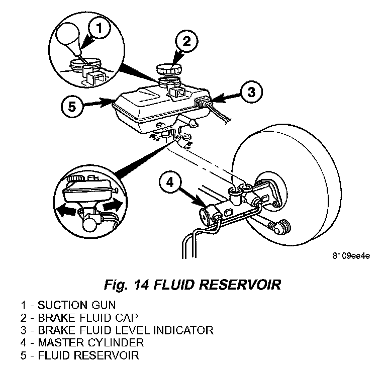 1. Using a suction gun remove as much brake fluid from the reservoir as possible (Fig. 14).