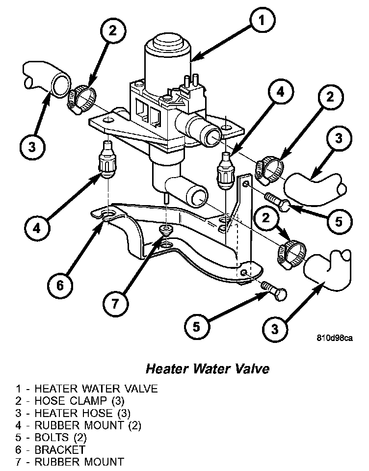1. If removed, install the rubber mounts to the heater water valve or bracket.