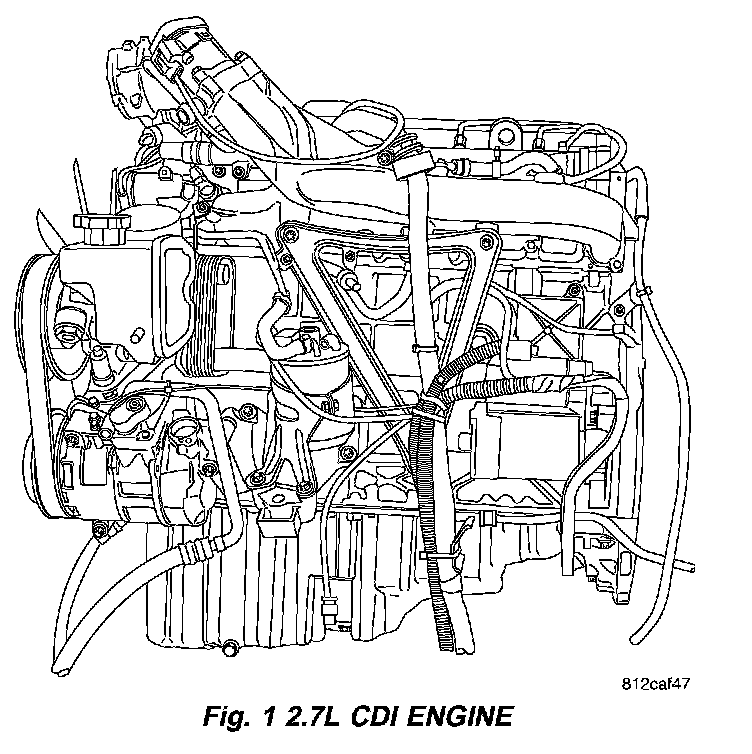 This 2.7 Liter five-cylinder Common Rail Diesel Injection (CDI) engine is an inline overhead valve diesel engine. This engine utilizes a cast iron cylinder block and an aluminum cylinder head. The engine is turbocharged and intercooled. This engine also has for valve per cylinder and dual overhead camshafts (Fig. 1).