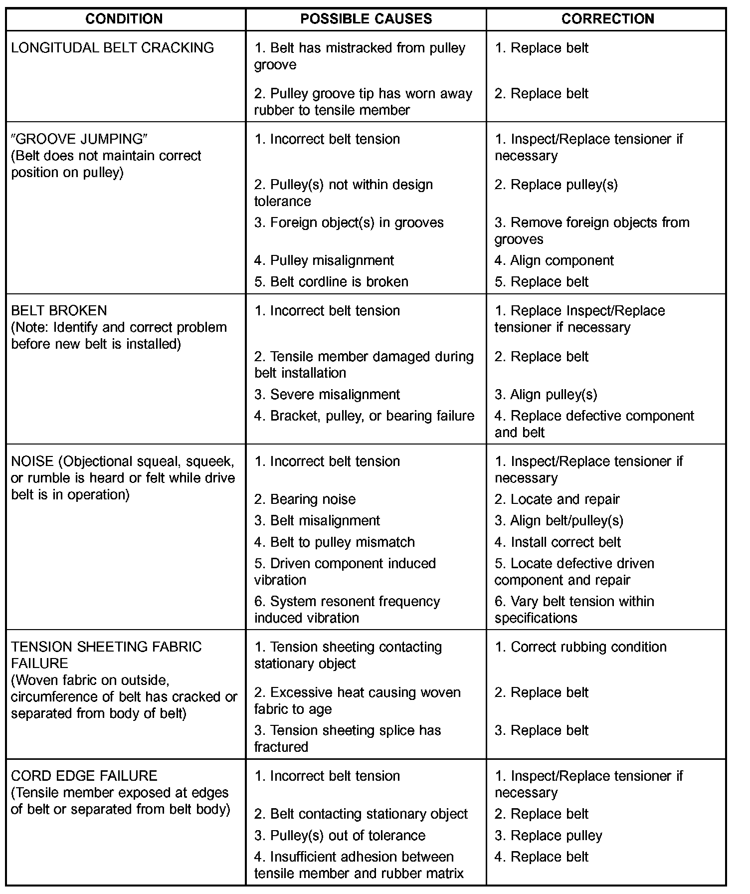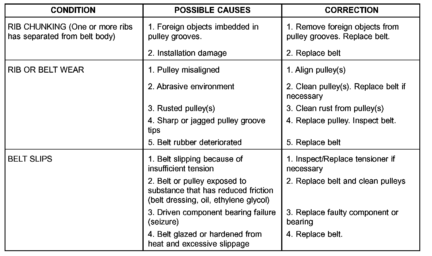 ACCESSORY DRIVE BELT DIAGNOSIS CHART