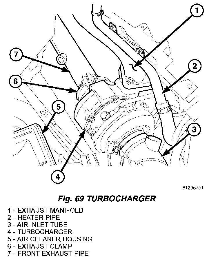 10. Remove the air cleaner housing hose from the turbocharger and position aside (Fig. 69).