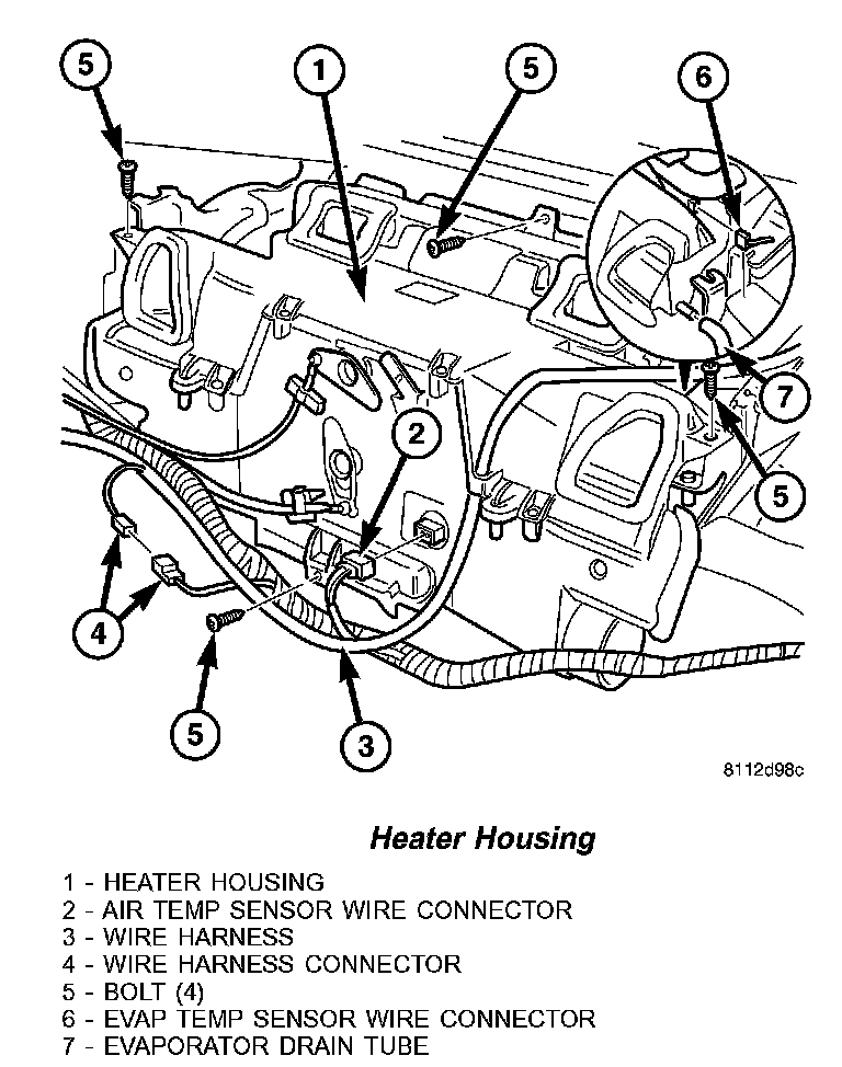 21. Remove the wire harness from the bracket located on the right side of the heater housing and position the wire harness out of the way.