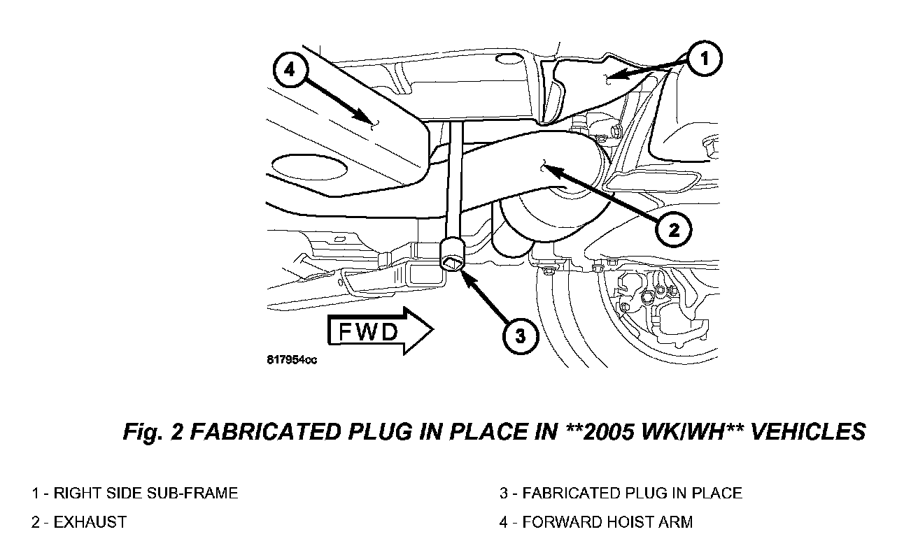50. On LX/RS/**2005 WH/WK vehicles, raise the vehicle on a suitable hoist. On 2006 - 2007 WH/WK/XH/XK skip to step 53. Other vehicles proceed to next step.**