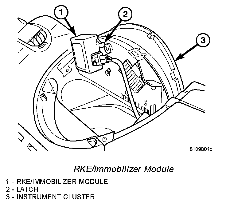 4. Engage and latch the RKE/immobilizer module to the back of the instrument cluster rear cover.