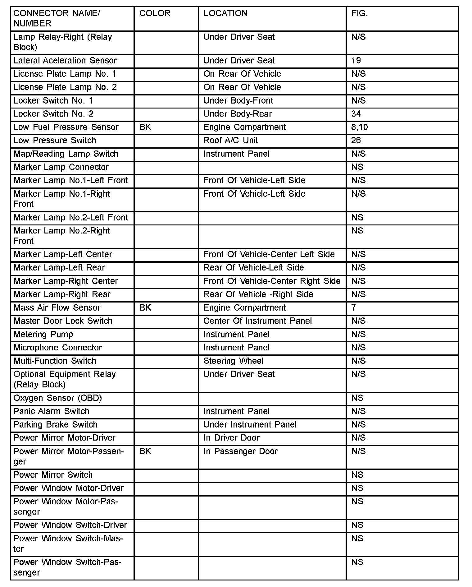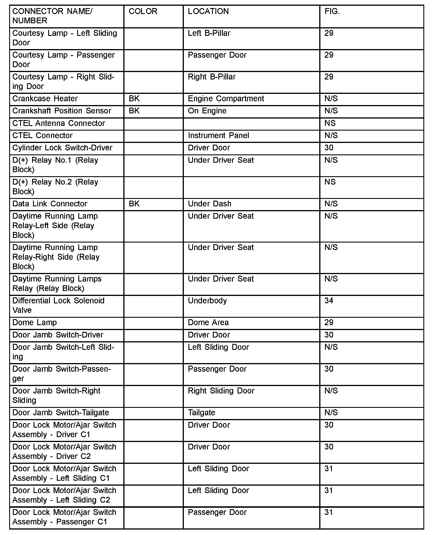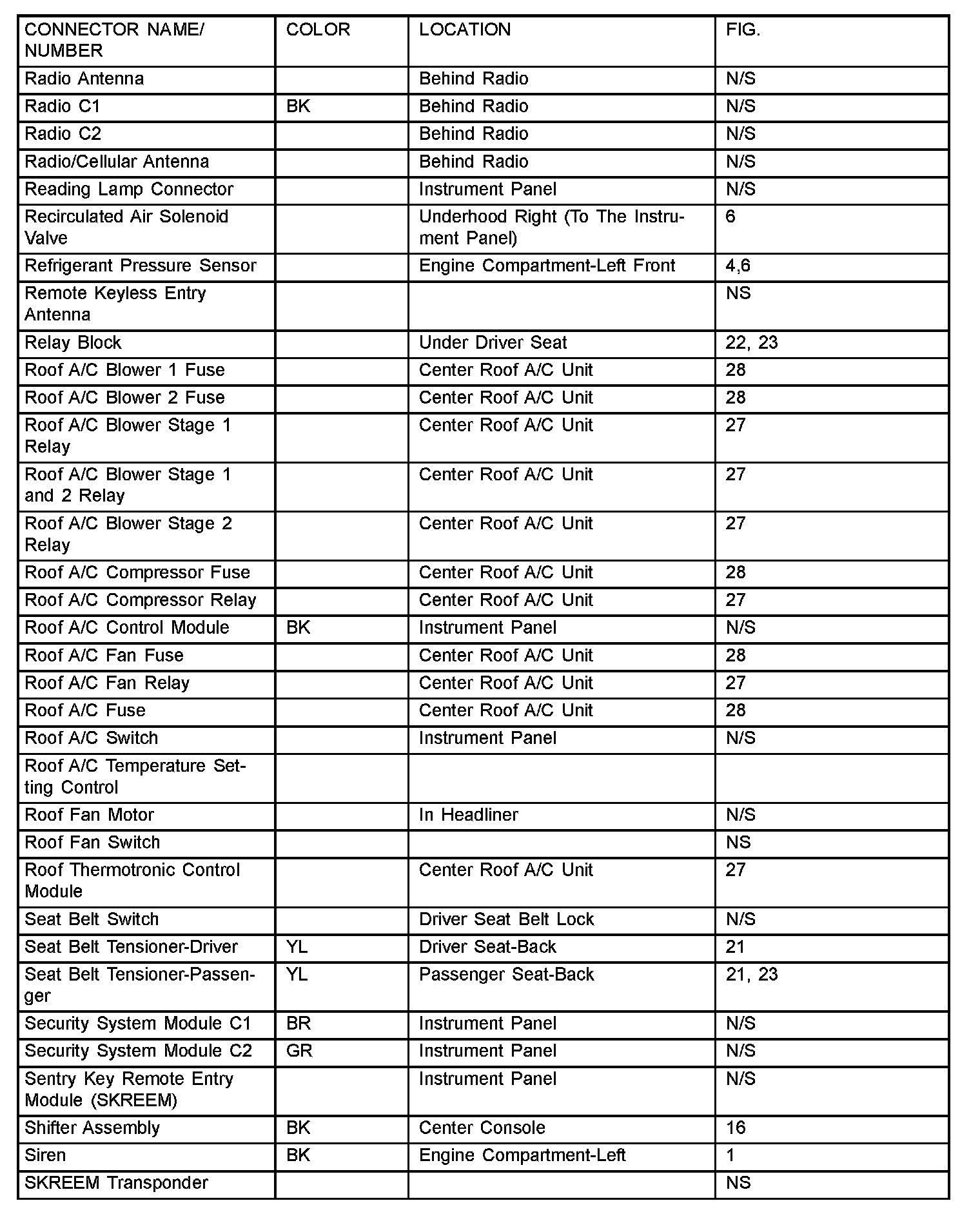 PLEASE NOTE:If a link on the index chart to a figure is not provided, that means that the connector and/or figure in question does NOT apply to the vehicle model selected.