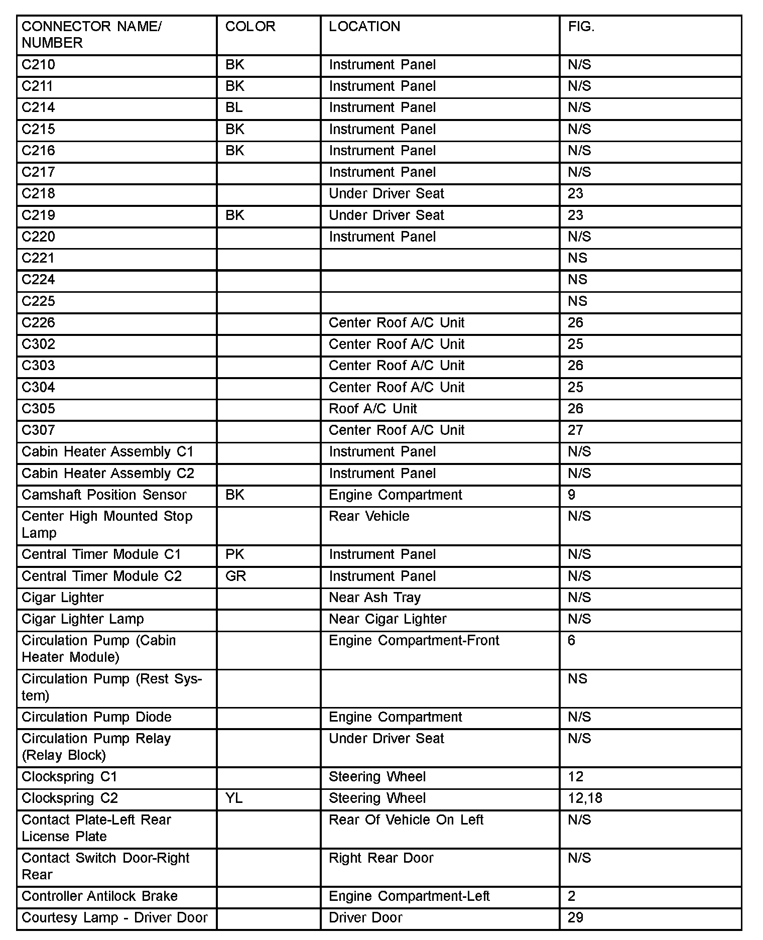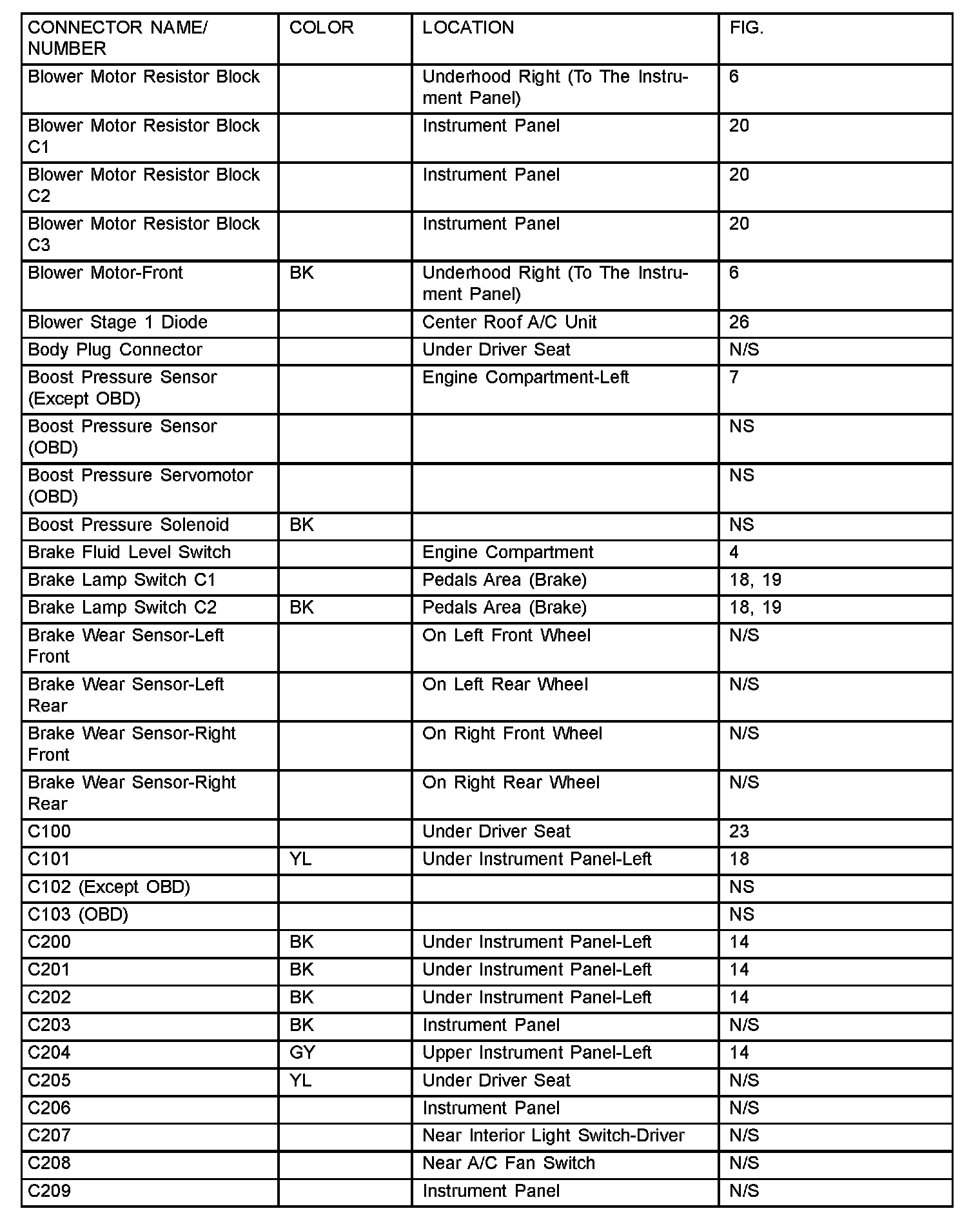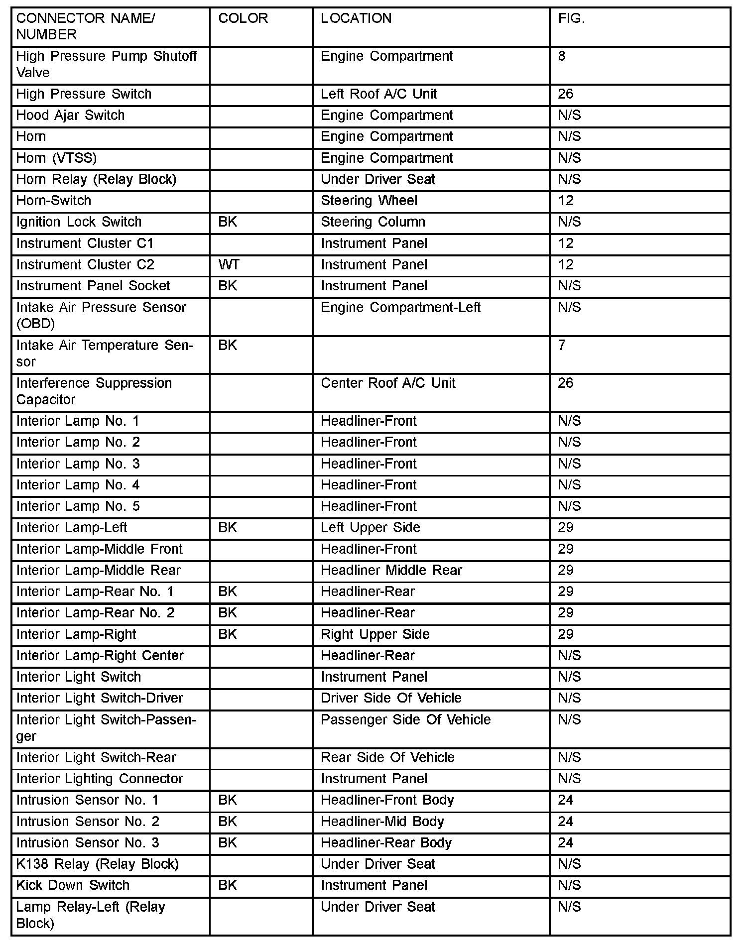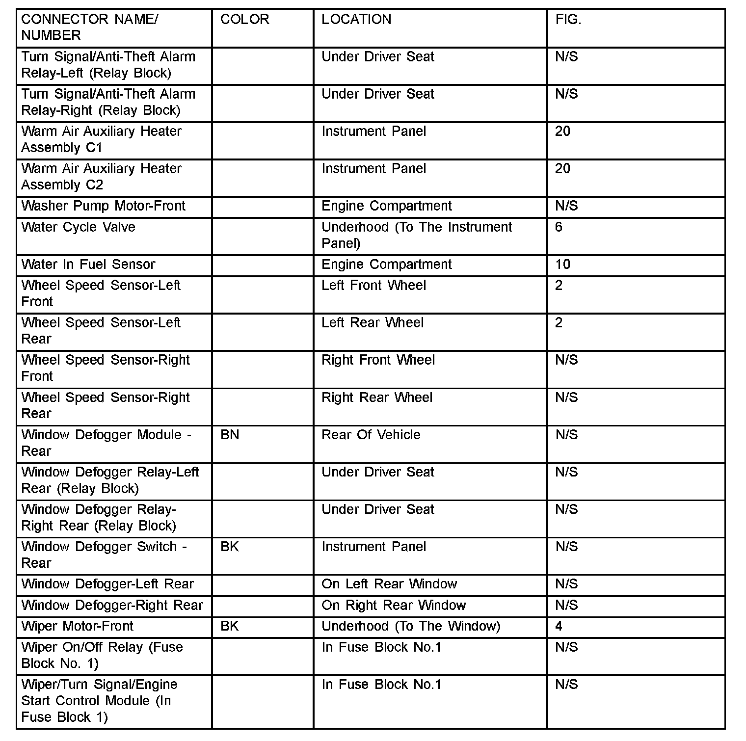 PLEASE NOTE:If a link on the index chart to a figure is not provided, that means that the connector and/or figure in question does NOT apply to the vehicle model selected.