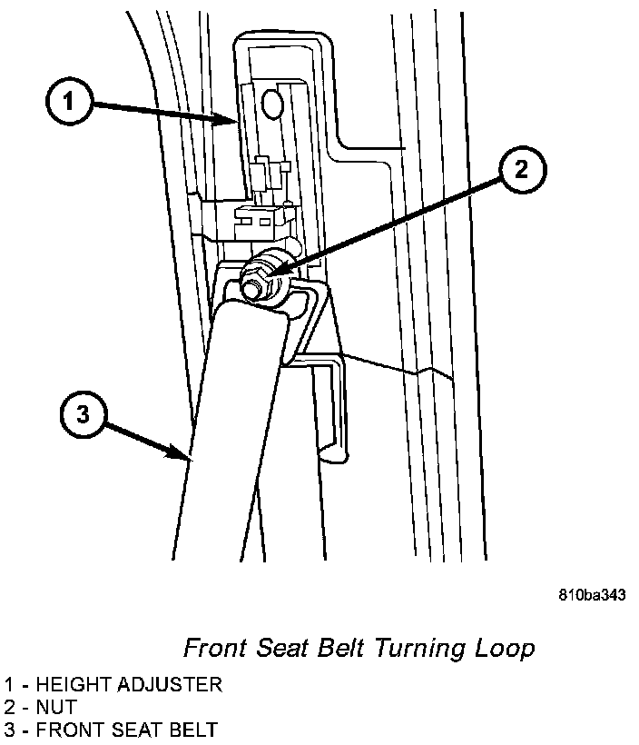 5. Install and tighten the nut that secures the front seat belt turning loop to the height adjuster. Tighten the nut to 35 Nm (26 ft. lbs.).