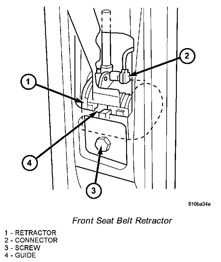 12. Remove the screw that secures the front seat belt retractor to the lower inner B-pillar.