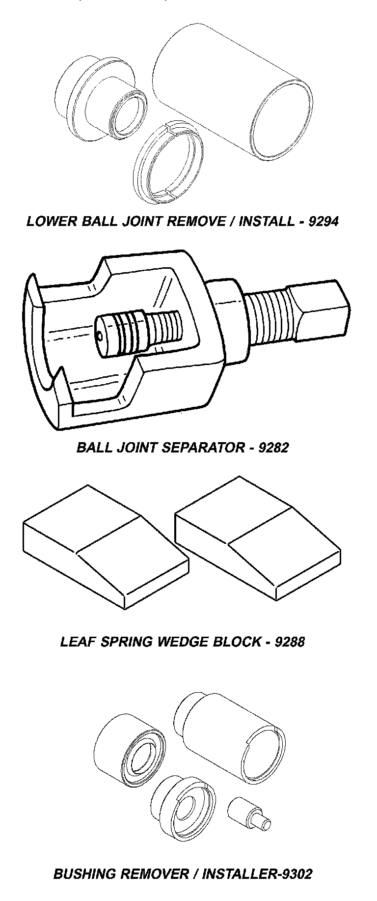 2. Press the new bushing into the control arm using special tool C-4212F and 9302-1 (Driver) with 9302-2 (Sizer cup) and 9302-4 (Receiver) (Fig. 2).