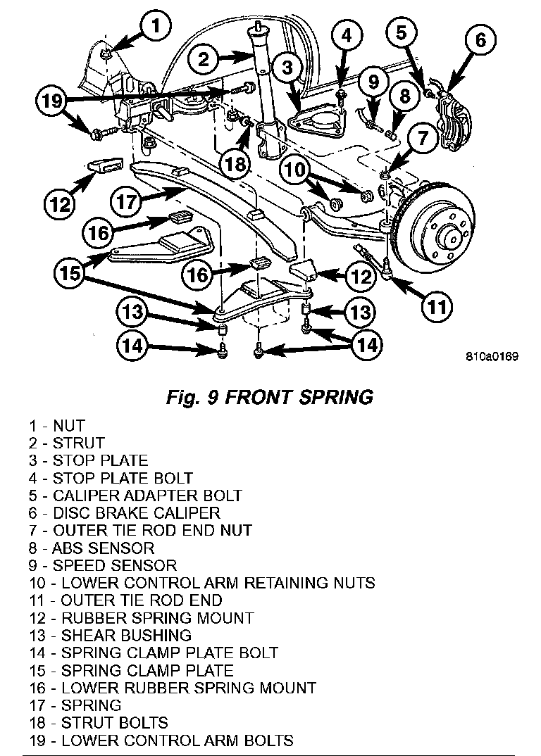 1. To do this next step the vehicle must be on the ground. Remove the front and rear bolts on the left and right spring clamp plates (Fig. 9).