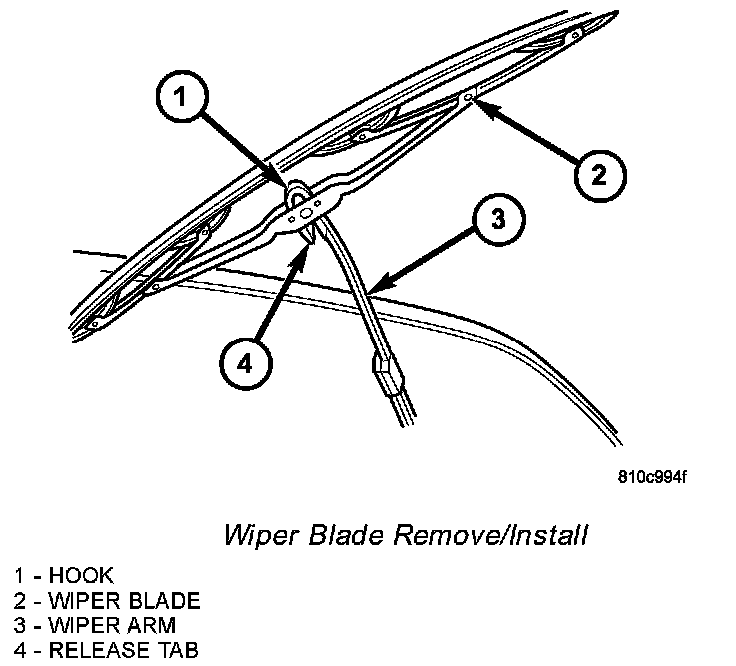 REMOVALNOTE: The wiper arms and wiper blades for this model are both unequal in length, with the longer arm and blade being installed on the left (driver) side of the windshield.