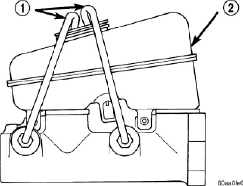 2. Attach bleed tubes to cylinder outlet ports. Then position each tube end into reservoir (1).