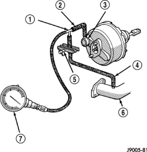 1. Connect vacuum gauge (7) to booster check valve with short length of hose and T-fitting (1).