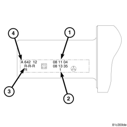 The front end of the crankshaft is engraved using laser marking technology. A group of letters identifies the color of each lower-half main bearing.