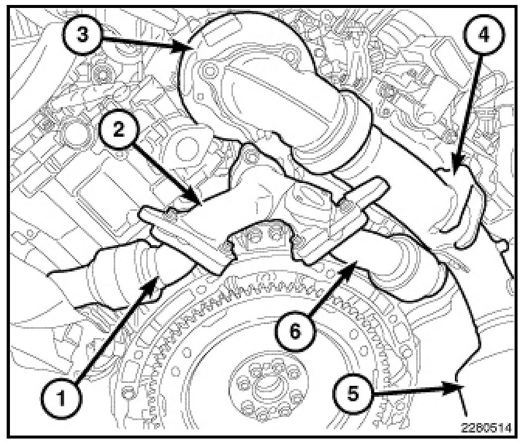 CAUTION: Observe the position of the turbocharger oil passage housing and gasket. Failure to properly position the gasket during assembly will result in immediate turbocharger failure after assembly.