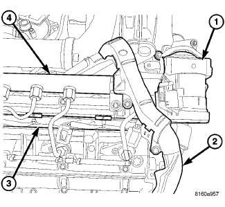 10. Install the fuel injector high pressure lines. Tighten lines to 27 Nm (20 ft. lbs.).