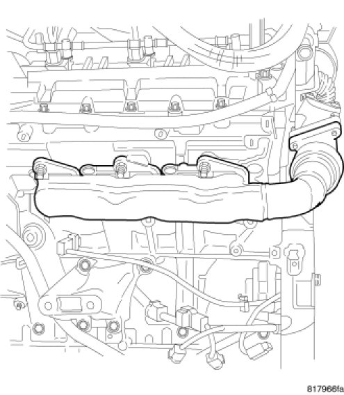 3. Install the left exhaust manifold to cylinder head nuts. Torque the nuts to 25 Nm ( 222 in. lbs.)