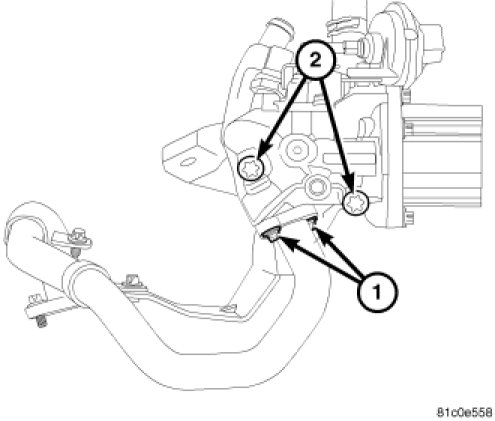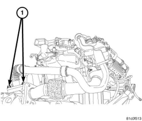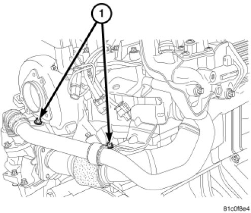 3. Install the rear EGR tube upper bolts (1). Do not tighten the rear EGR tube upper bolts at this time.
