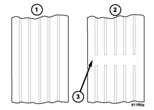 Tread wear indicators (3) are molded into the bottom of the tread grooves. When tread depth is 1.6 mm (1/16 in.), the tread wear indicators (3) will appear as a 13 mm (1/2 in.) band.