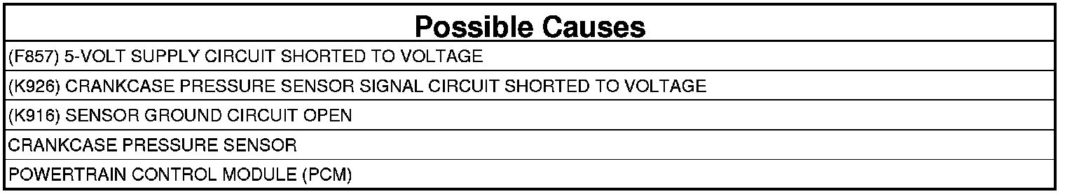 - Repair the (K926) Crankcase Pressure Sensor Signal circuit for a short to voltage.
