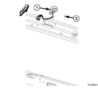 2. Lower the rear portion of the headliner as necessary to access underside of antenna (1) Headliner - Removal.