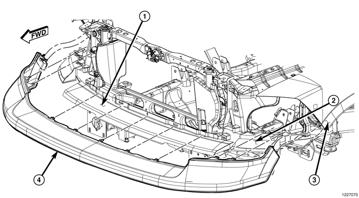 4. Using trim stick or equivalent, separate the upper clips and remove the fascia (4).