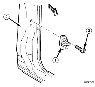 6. Install the latch striker (1). Door Latch Striker - Installation