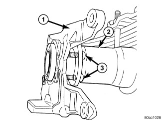 2. Install support plate on axle flange. Tighten attaching nuts (3) to 102 Nm (75 ft. lbs.).