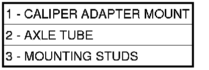 1. Install the caliper adapter mount (1) on the axle housing (2).