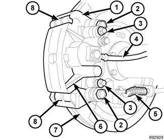 5. Remove the caliper (3), by tilting the top out and off the caliper adapter.