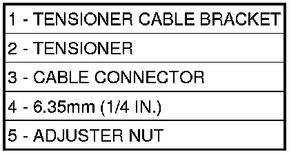 NOTE: Tensioner adjustment is only necessary when the tensioner, or a cable has been replaced or disconnected for service. When adjustment is necessary, perform adjustment only as described in the following procedure. This is necessary to avoid faulty park brake operation.