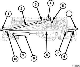 6. Remove tie rod (3) from the knuckle (2) and the drag link from the tie rod with (1).