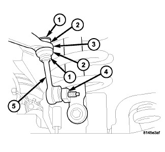 3. Remove the retainers (1) and grommets (2) from the stabilizer bar links (5).