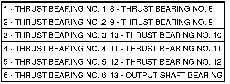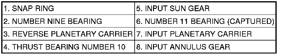 NOTE: The number 11 thrust bearing is captured under the input planetary carrier pinion gears and is not serviceable.