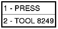 8. Using Spring Compressor (2) and a suitable shop press (1), compress the 4C piston return spring and install the snap-ring.